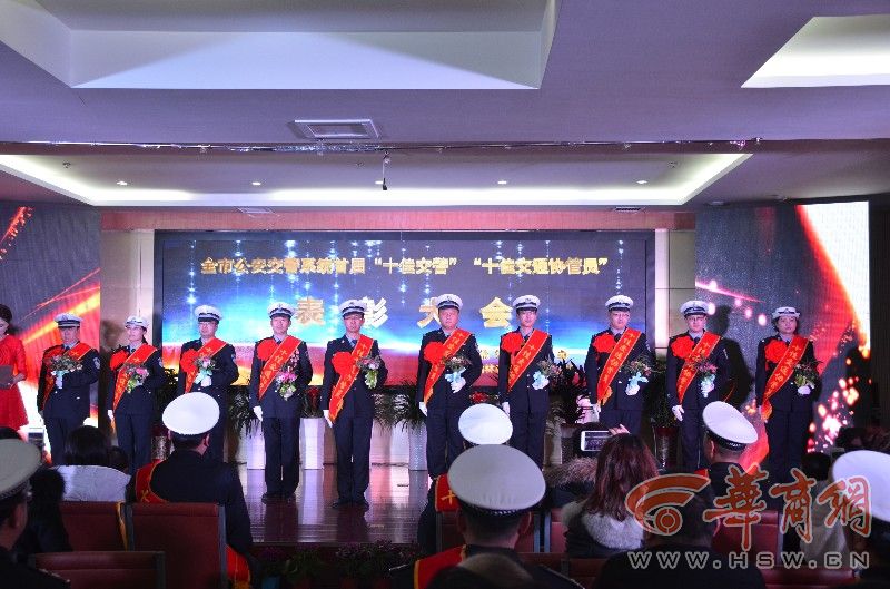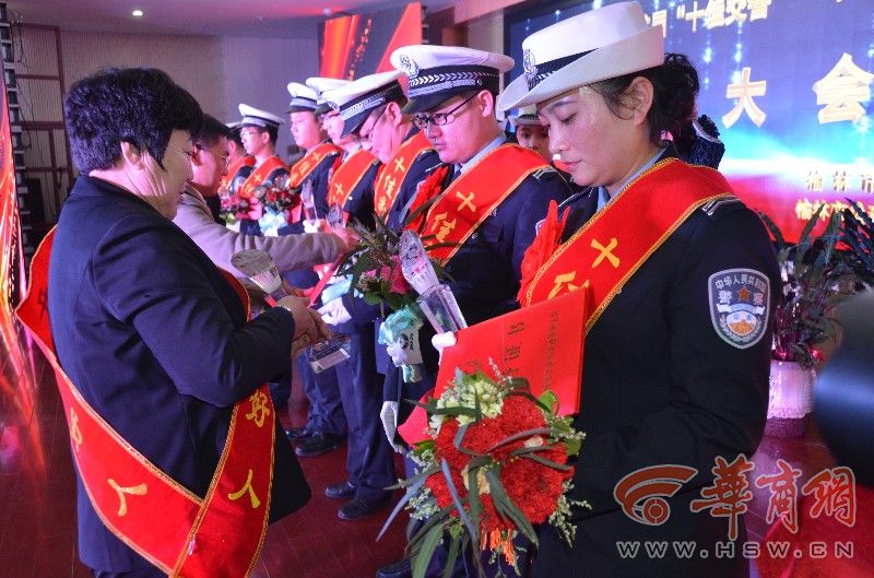 1月10日晚7时30分,表彰大会现场播放了“十佳交警”、“十佳交通协管员”专题片,中国好人、陕西省第四届诚实守信道德模范谢海琴、中国好人、榆林好人李慧荣等为“十佳交警”、“十佳交通协管员”颁发了奖杯证书。