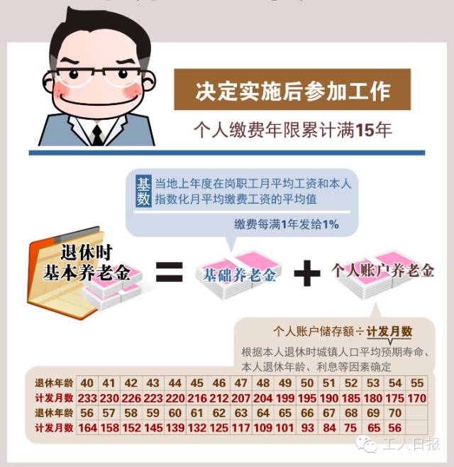 决定实施后参加工作、个人缴费年限累计满15年的人员。