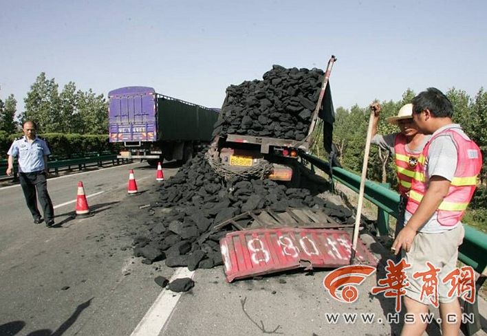 6月11日下午2时40分左右,在西宝高速虢镇出口附近发生一起交通事故,一辆载有32人的宝鸡开往西安的双层大巴追尾一辆拉煤车,事故造成2人死亡,多人不同程度受伤。下午4点左右,华商报记者在现场看到,双层大巴由于追尾,双层车头被严重损毁,地上残留着大量煤炭和玻璃残渣,车内还依稀可以看到斑斑血迹。
