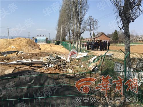 华商报记者在事发现场看到,一架印有“凤凰飞院”字样的小型白色红条小型飞机坠毁在千阳县南寨镇闫家村一百米外的田地里。现场有不少群众围观,已拉起警戒线。