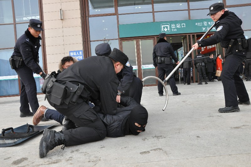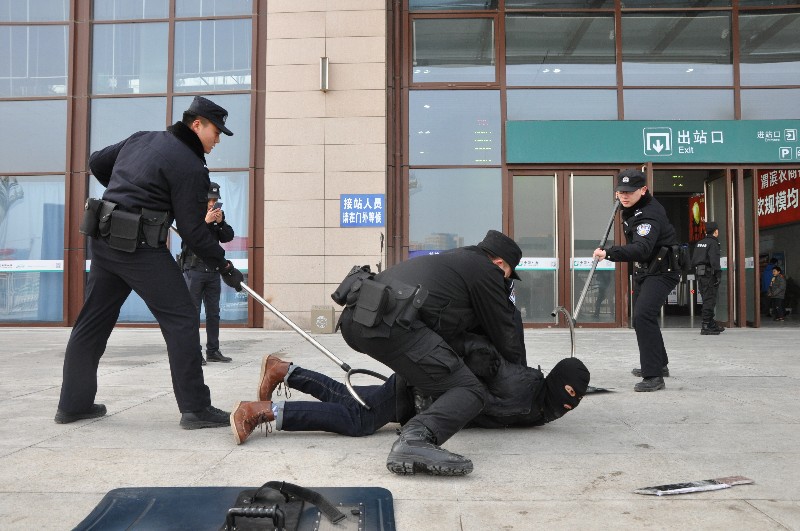 同时,为保障广大旅客春运的平安出行,宝鸡南站派出所联合宝鸡市高新公安分局巡特警大队、铁路警犬工作队开展了应急事件处置演练,向广大旅客展示了铁路警方应对突发事件的处置能力。