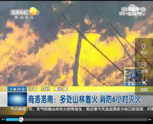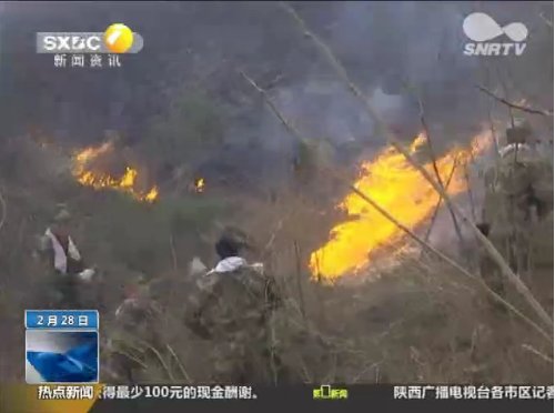 2月27日,洛南县洛源镇发生大面积山林大火,武警商洛支队紧急出动30名兵力,和大火展开了连续6个小时的激烈鏖战。