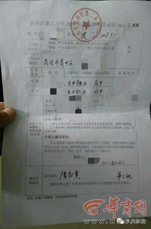 唐志英称,按照学区划分,原有的常住居民的孩子上学没有问题,后来社区新增的户口较多,再加上进城落户家庭,所以他们现在要求父母一方必须要提供单位证明,还必须要有熟人介绍。“今年招收了600多名学生,学区内的只有100多名,其余的都是经过熟人介绍的,必须有一位公职人员作为担保人,并填写报名登记表和校长签名才能入学。“