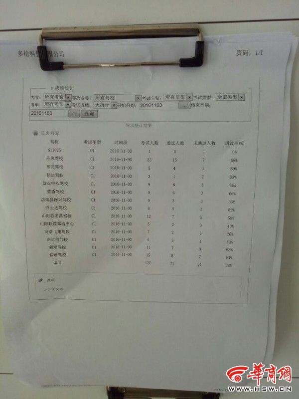 在垭口考场科目三等候室,还贴着一张考试成绩单,上面写明3日C1驾照考试当天,东龙驾校考试人数为5人,通过人数为4人通过率80%。随后记者从东龙驾校了解到,出事的学员小马今年刚报名,这次是自己网上预约考试,这是小马第二次参加科三考试。