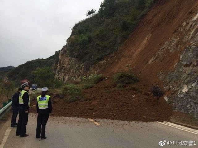 10月10日上午9时30分,在丹竹路巡查的丹凤交警大队民警发现丹竹路6公里处发生滑坡,占用整个路面,道路中断。
