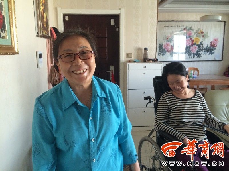 61岁的李艳华吃力地把张娟从床上上抱起来,然后很熟练地把张娟在轮椅上放好。张娟脸上露出孩子般的笑容,不停地喊着“妈妈,妈妈……”