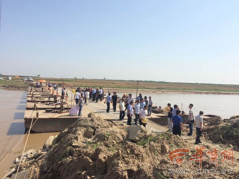6月6日开始,202省道阳村渭河大桥实施交通封闭管制,禁止车辆通行,但有人私自在桥下修了一座浮桥,并向过往车辆收费。昨日,华阴市和大荔县的河务、公安等相关部门到现场拆除此非法浮桥。华商记者 康菲