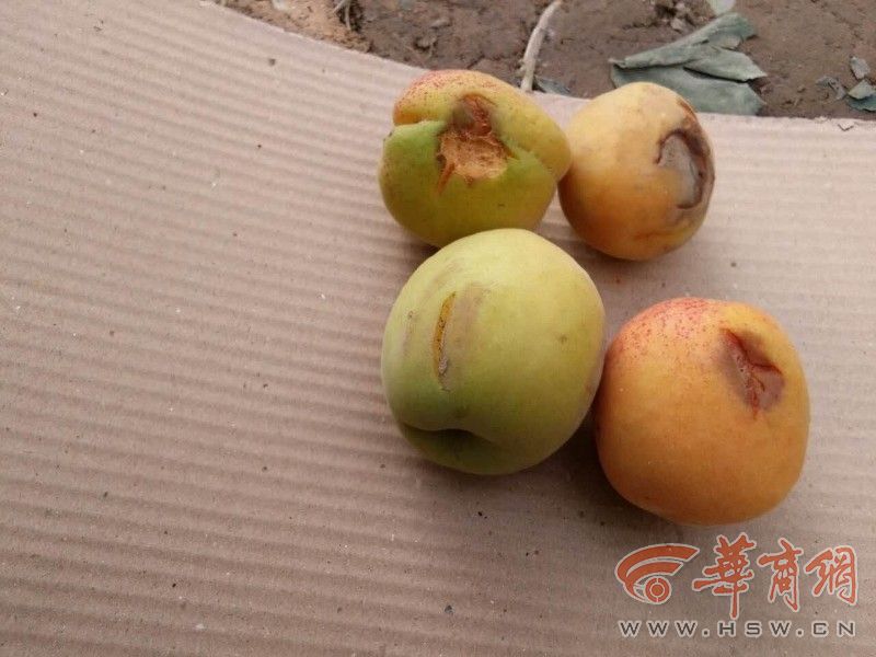 6月5日下午,大荔县段家镇下了20余分钟的暴雨,其中夹杂着冰雹,该镇约1.6万亩西瓜、李子、核桃等农作物受损。华商记者 边飞