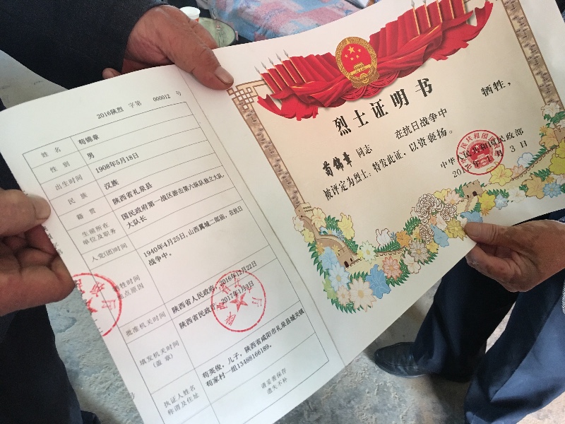 从高中时代到古稀之年,礼泉老人苟英俊花半生时间,为抗战而牺牲的父亲“正名”。让这位老人欣慰的是,在他77岁时收到民政部颁发的烈士证明书,证明其父亲苟锦章是在抗日战争中牺牲,被评为烈士。