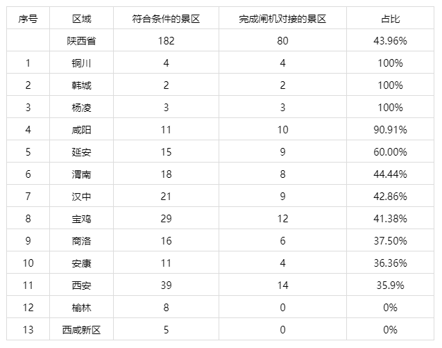 巷议数据在研究《2018年陕西省智慧旅游工作实施方案》后发现,文件里关于智慧旅游的重视多停留在硬件建设方面,而对于景区自身内部的智慧经营管理提及较少。如下图所示,就是该方案里最重要的一部分,关于“一机游三秦”公共服务平台对接工作进展:
