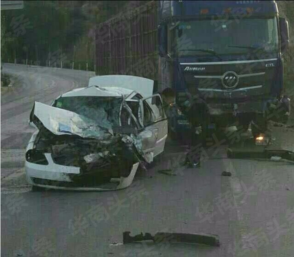 4月30日6时许,延安市宝塔区过境路川口段同岔村发生一起交通事故,一辆半挂车与一辆轿车相撞,轿车内4人,2人当场身亡,被困车内2人经抢救无效死亡。华商记者 郭强