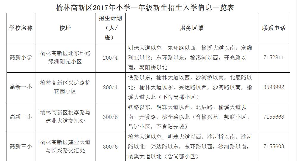 据统计,今年榆林市高新区共有9所学校提供2060个学位,适龄儿童家长可登陆榆林国家高新技术产业开发区网站(http://www.ylgxq.gov.cn),访问高新教育通知公告栏目,查询高新区各小学校址、招生范围、招生计划等详细信息,并为适龄儿童合理选择就读学校。