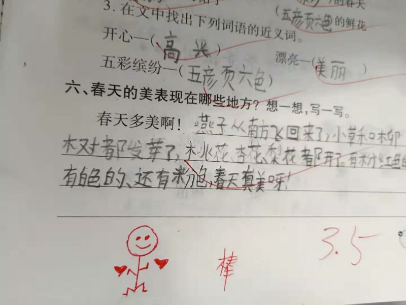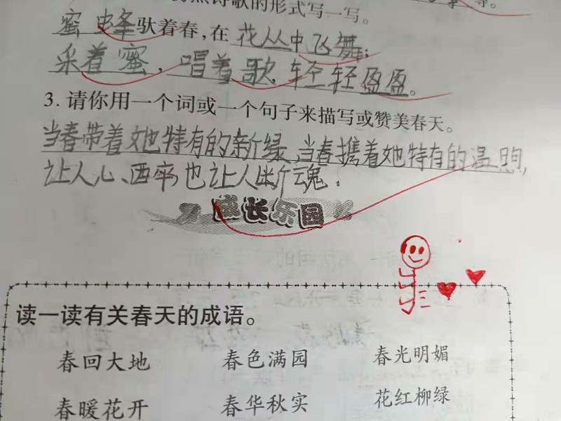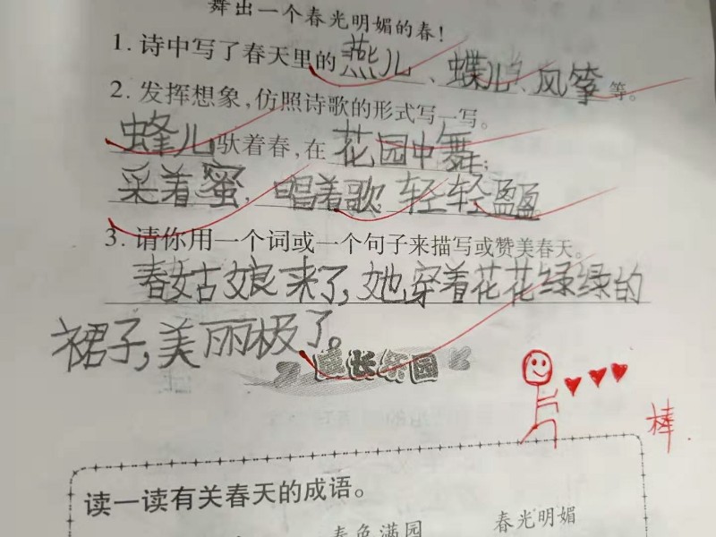 张晨帆老师别出心裁的批改作业方式也让不少家长非常高兴,有老师给她发微信称:“把孩子高兴坏了,越有信心了,谢谢你的鼓励!”